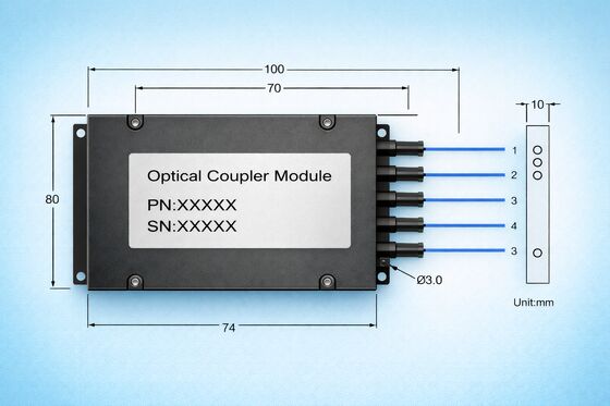 This 4*4 Filter PM FBT Coupler is a high-performance polarization-maintaining (PM) fiber optic device based on FBT (Fused Biconical Taper) technology. It is designed to evenly distribute an input optical signal across four output ports, achieving a high-precision splitting ratio of 25:25:25:25. Manufactured using Corning Panda polarization-maintaining fiber, the product effectively preserves the polarization state of the optical signal, thereby minimizing polarization crosstalk and link loss. It is ideally suited for applications demanding high levels of polarization stability, power distribution uniformity, and system reliability. Technical specifications indicate that this product features low insertion loss, high extinction ratio, high return loss, and high directivity. Its standard operating wavelength is 1550nm, with support available for customized wavelengths such as 980nm, 1064nm, and 1310nm. The standard ABS box package measures 100*80*10mm; the device supports various fiber configurations—including 250μm bare fiber, as well as 0.9mm or 2.0mm jacketed cables—facilitating easy integration into amplifier modules, laser systems, and various OEM photonic equipment.