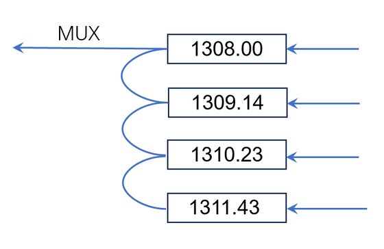 CH1- 1307.80~1308.20nm CH2- 1308.94~1309.34nm CH3- 1310.08~1310.48nm CH4- 1311.23~1311.63nm |