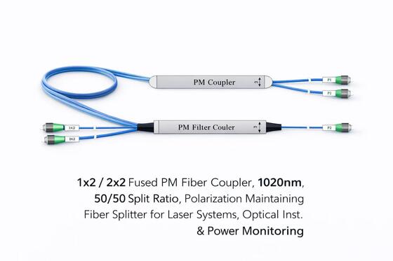 Summary: Overall, the 1*2 / 2*2 Fused PM Fiber Coupler (1020 nm, 50/50) is a core polarization-maintaining passive device for laser systems, fiber optic instruments, power monitoring, and polarization-related experimental platforms. It achieves a good balance between low insertion loss, high extinction ratio, high return loss, high directivity, and medium power carrying capacity, and provides great flexibility for system-level integration through its compact steel tube packaging and standardized connectors. Whether used as a fixed splitter module in mass-produced equipment or as a reconfigurable optical path node in the laboratory, this product helps users build polarization-stable, simple, and easy-to-maintain fiber optic systems in the 1.0 μm band, making it one of the fundamental components that should be given priority when creating high-performance polarization-maintaining solutions.