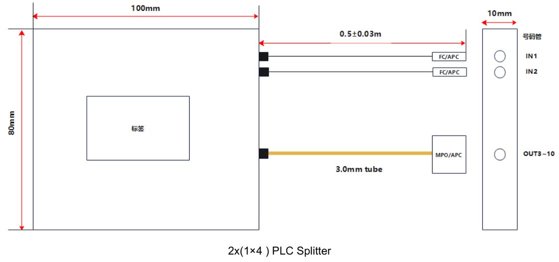 2x(1x4) PM PLC Splitter Polarization Maintaining Fiber Splitter 1260 1650nm FC APC To MPO APC For Coherent Communication Gyroscope And Fiber Sensor