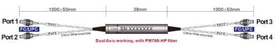 The extinction ratio of the device is ≥20dB/≥18dB for CR>5% and CR≤5% respectively. Combined with PM780-HP panda-type polarization-maintaining fiber and precise axial fabrication, it maintains good polarization control in dual-axis operation mode, meeting the signal stability requirements of polarization-sensitive systems.